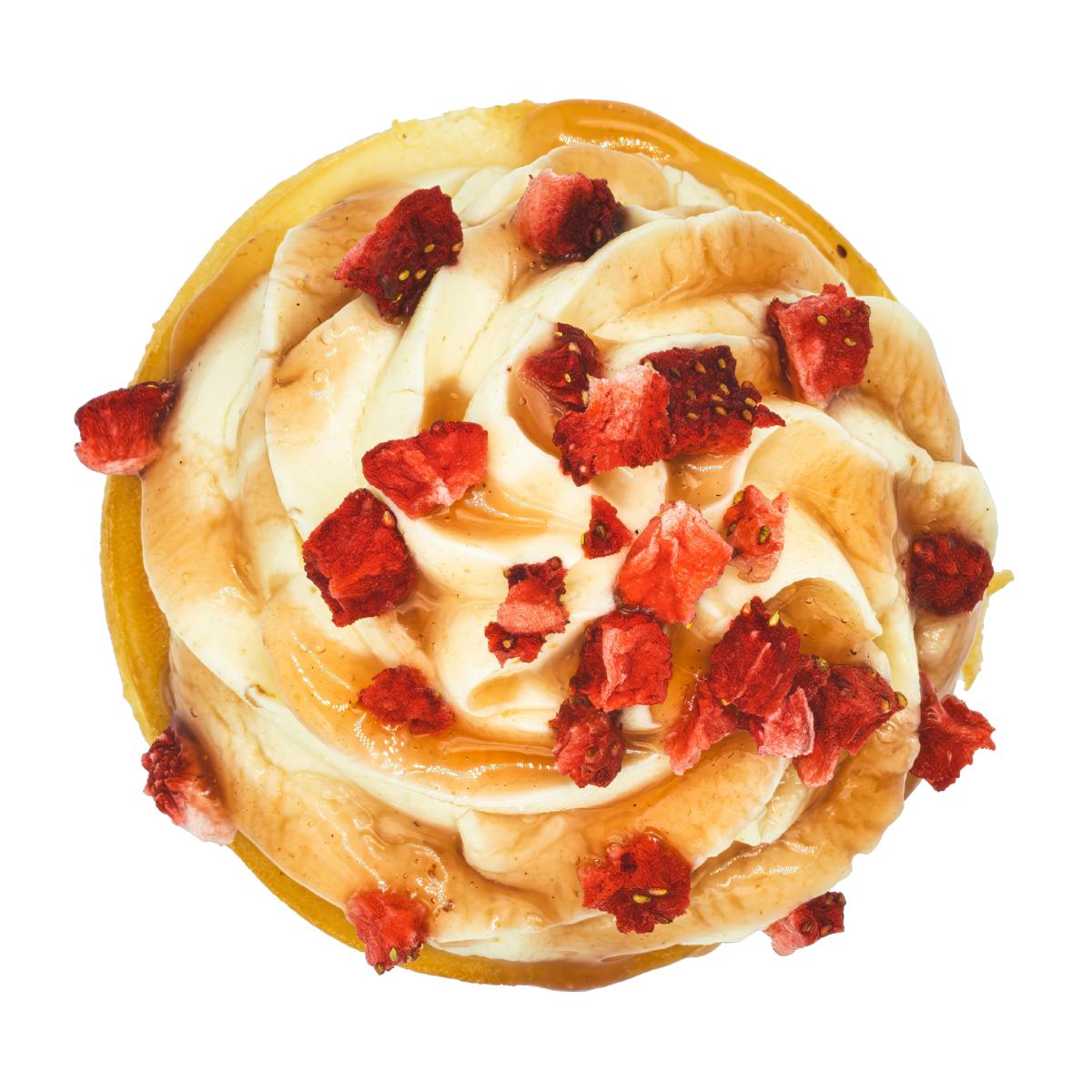 Classic and comforting, our Strawberry Baked Cheesecake features a sweet strawberry compote filling. Baked on a buttery biscuit crust, it's a fruity and indulgent treat made with real strawberries and handcrafted love.