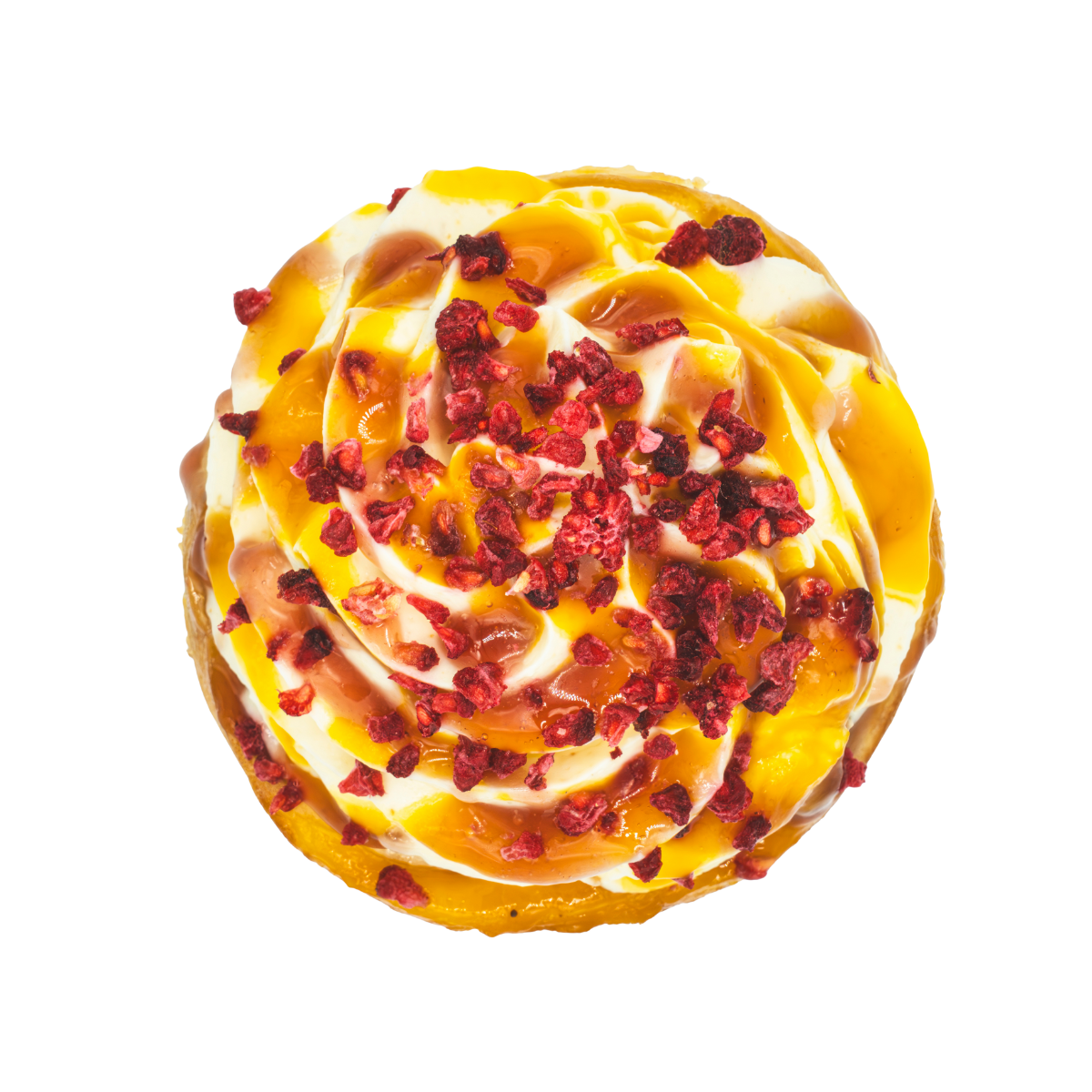 This creamy treat is layered with vibrant mango puree and a swirl of tangy raspberry, perfectly baked for a fruity flavour that pops.